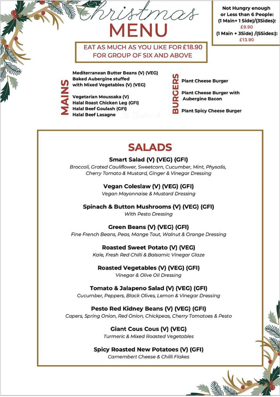 Celebrate the season with our special Christmas menu featuring traditional roast turkey and festive favorites